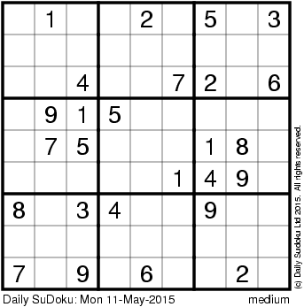 The Daily SuDoku: Mon 11-May-2015