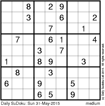 The Daily SuDoku: Sun 31-May-2015