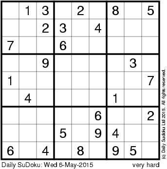 The Daily SuDoku: Wed 6-May-2015