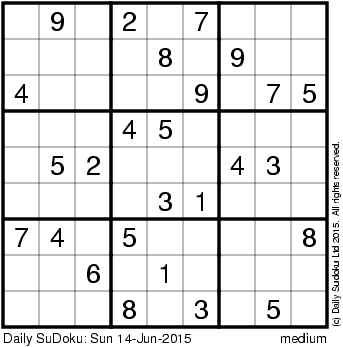 The Daily SuDoku: Sun 14-Jun-2015