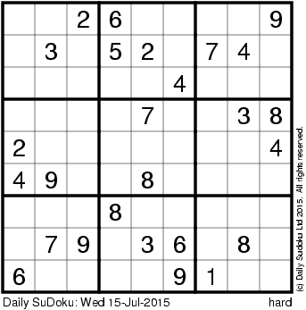 The Daily SuDoku: Wed 15-Jul-2015