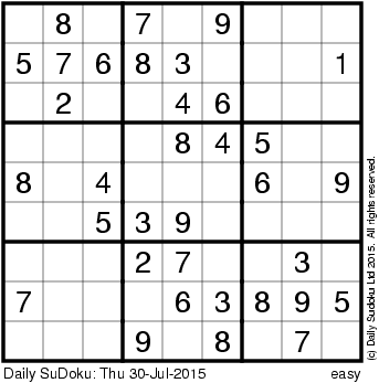 The Daily SuDoku: Thu 30-Jul-2015