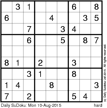 The Daily SuDoku: Mon 10-Aug-2015