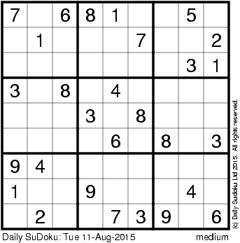 The Daily SuDoku: Tue 11-Aug-2015