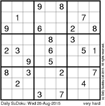 The Daily SuDoku: Wed 26-Aug-2015
