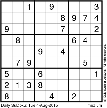 The Daily SuDoku: Tue 4-Aug-2015