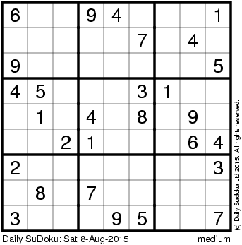 The Daily SuDoku: Sat 8-Aug-2015