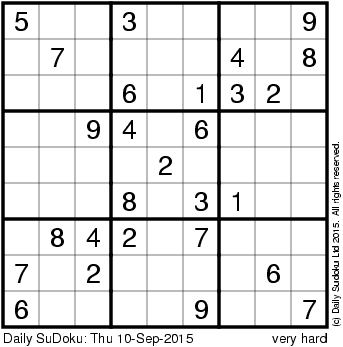 The Daily SuDoku: Thu 10-Sep-2015
