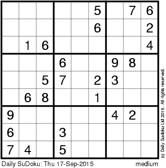 The Daily SuDoku: Thu 17-Sep-2015