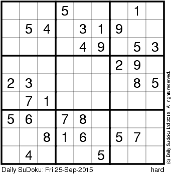 The Daily SuDoku: Fri 25-Sep-2015