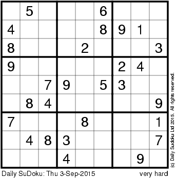 The Daily SuDoku: Thu 3-Sep-2015