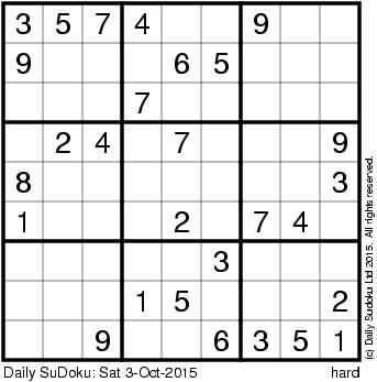 The Daily SuDoku: Sat 3-Oct-2015
