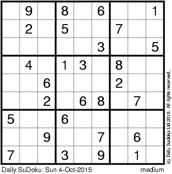 The Daily SuDoku: Sun 4-Oct-2015