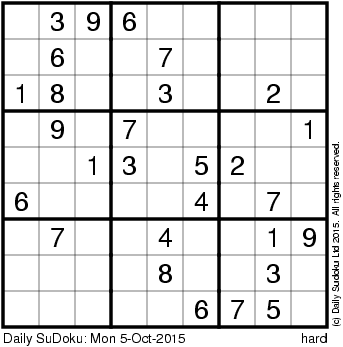 The Daily SuDoku: Mon 5-Oct-2015
