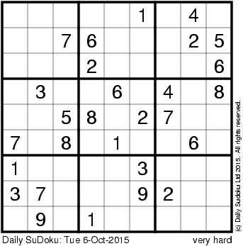 The Daily SuDoku: Tue 6-Oct-2015
