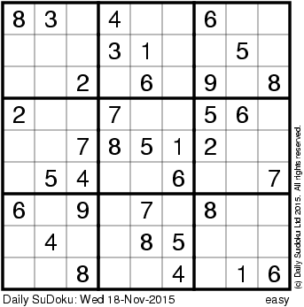 The Daily SuDoku: Wed 18-Nov-2015