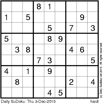 The Daily SuDoku: Thu 3-Dec-2015