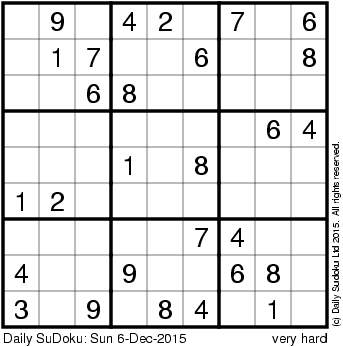 The Daily SuDoku: Sun 6-Dec-2015