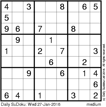 The Daily SuDoku: Wed 27-Jan-2016