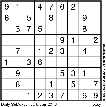 The Daily SuDoku: Tue 5-Jan-2016
