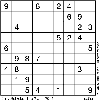 The Daily SuDoku: Thu 7-Jan-2016