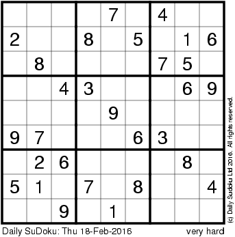 The Daily SuDoku: Thu 18-Feb-2016