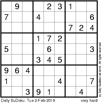 The Daily SuDoku: Tue 2-Feb-2016