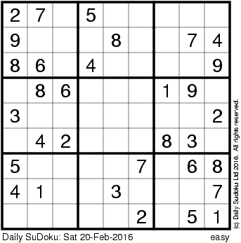 The Daily SuDoku: Sat 20-Feb-2016