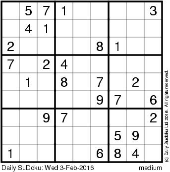 The Daily SuDoku: Wed 3-Feb-2016