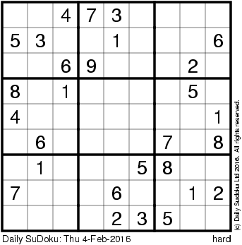 The Daily SuDoku: Thu 4-Feb-2016