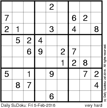The Daily SuDoku: Fri 5-Feb-2016