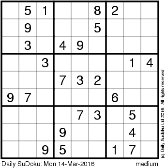 The Daily SuDoku: Mon 14-Mar-2016