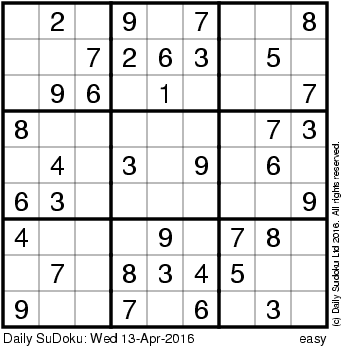 The Daily SuDoku: Wed 13-Apr-2016