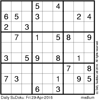 The Daily SuDoku: Fri 29-Apr-2016