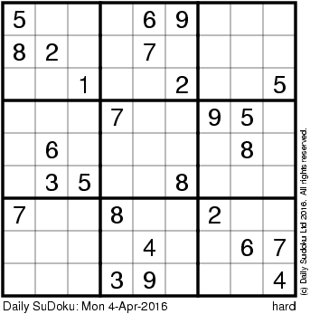 The Daily SuDoku: Mon 4-Apr-2016