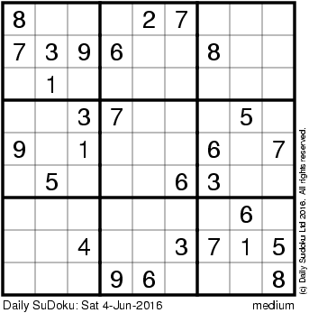 The Daily SuDoku: Sat 4-Jun-2016