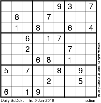 The Daily SuDoku: Thu 9-Jun-2016