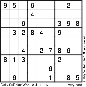 The Daily SuDoku: Wed 13-Jul-2016