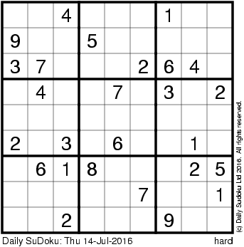 The Daily SuDoku: Thu 14-Jul-2016