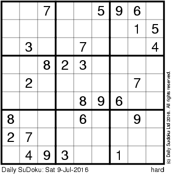 The Daily SuDoku: Sat 9-Jul-2016