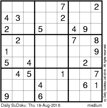 The Daily SuDoku: Thu 18-Aug-2016