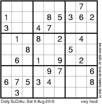 The Daily SuDoku: Sat 6-Aug-2016