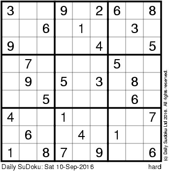 The Daily SuDoku: Sat 10-Sep-2016