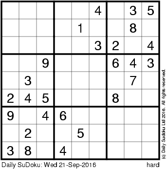The Daily SuDoku: Wed 21-Sep-2016