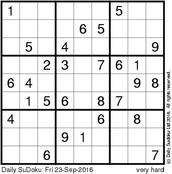 The Daily SuDoku: Fri 23-Sep-2016