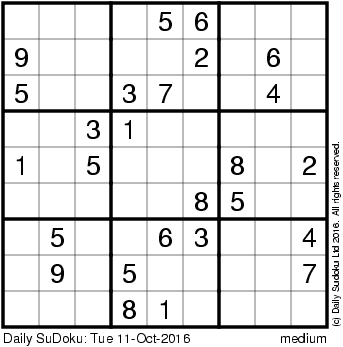 The Daily SuDoku: Tue 11-Oct-2016