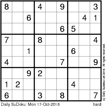 The Daily SuDoku: Mon 17-Oct-2016