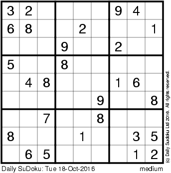 The Daily SuDoku: Tue 18-Oct-2016