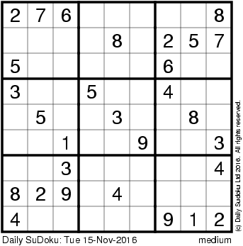 The Daily SuDoku: Tue 15-Nov-2016