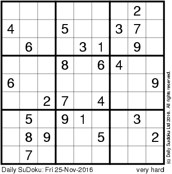 The Daily SuDoku: Fri 25-Nov-2016